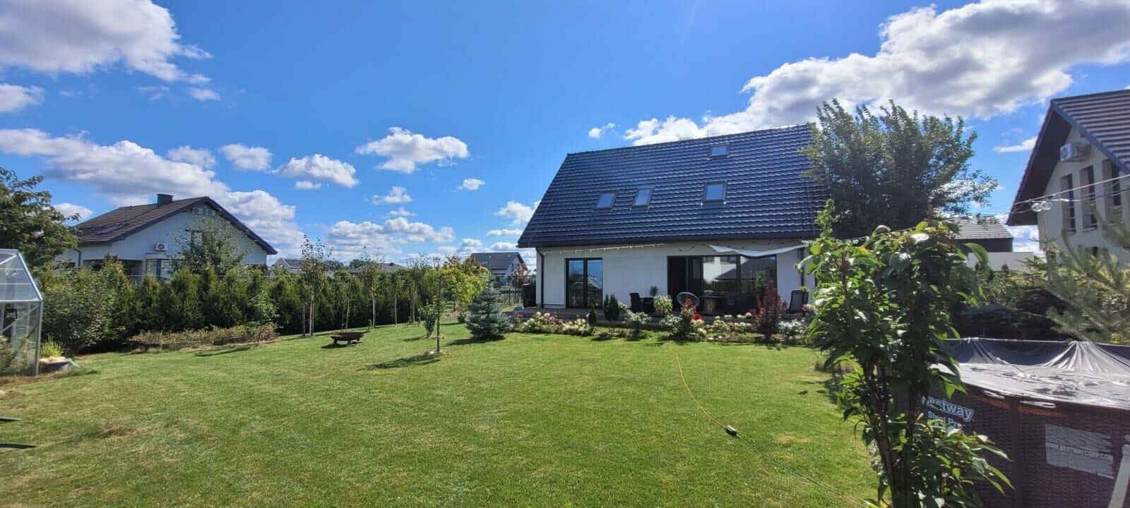 Nowoczesny, energooszczędny budynek z dachem dwuspadowym, gotowy do zamieszkania, wykończony w wysokim standardzie.